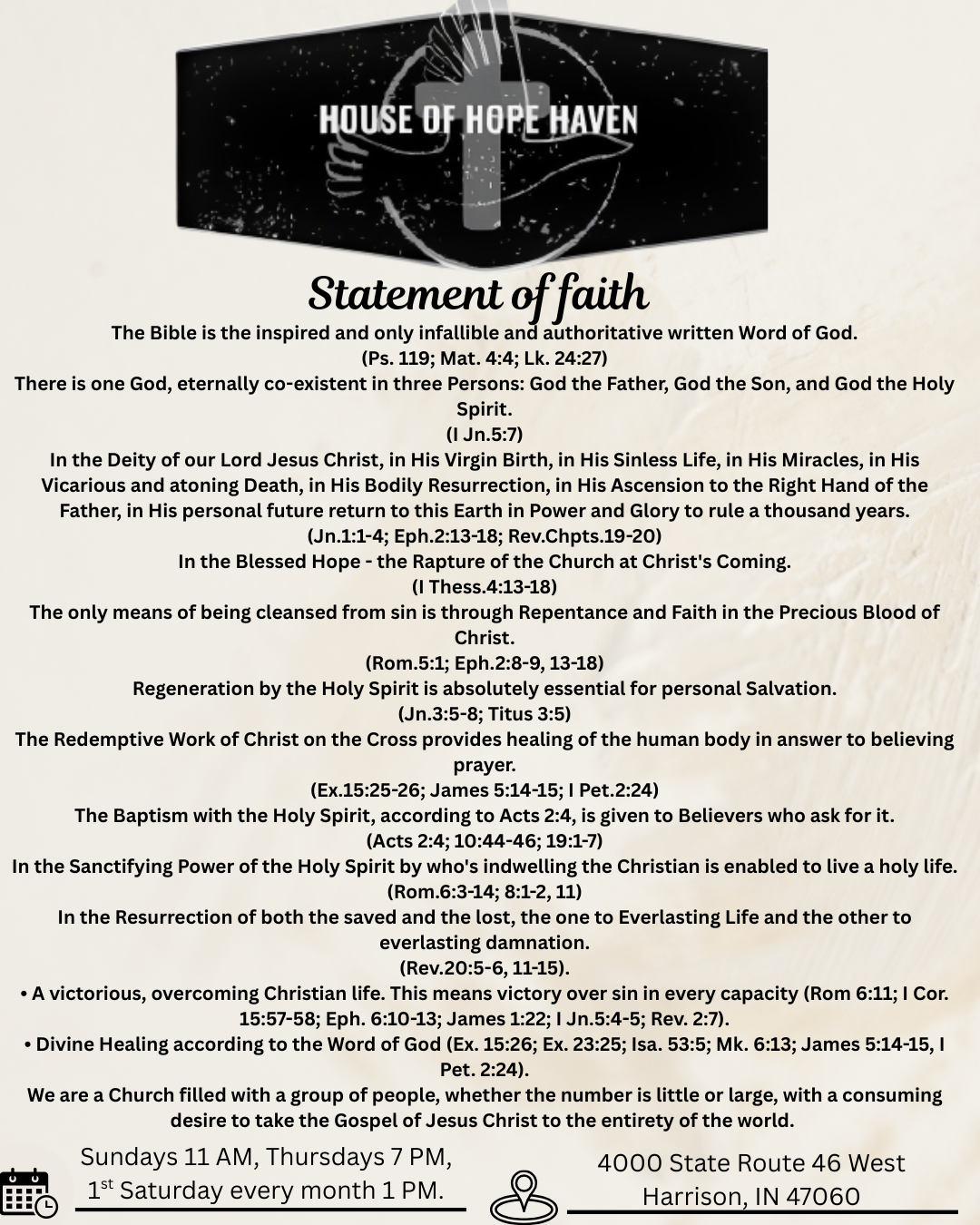 House Of Hope Haven services - A time of praise, worship, praying, and anointed preaching of God's Word to equip and encourage believers in their faith journey.